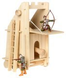 Catapults - A catapult was a large machine used to throw objects, often rocks, arrows, pots of fire, or even spears, at a castle. This would destroy the castle walls and buildings. When we think of a catapult the one shown here is what we envision. But more often than not the catapults used for sieging didn't have the cup that you put the thrown object into. They usually had a sling. This sling could generate more force and throw the object further with more accuracy. This sling effect was later developed into the Trebuchet. Shown in picture: Schleich Catapult