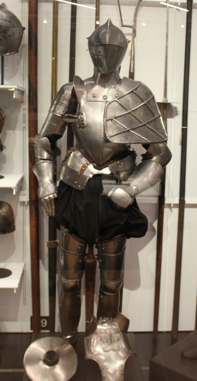 As displayed this armor is for heavy cavalry, horsemen who specialized in charging the enemy, attacking with a spear braced