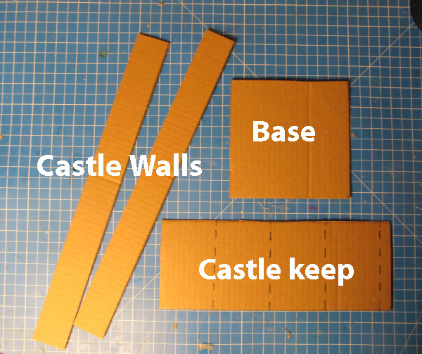 This project is easy to make. And you end up with a unique looking project that is functional. And all you need is three pieces of cardboard. The picture above shows four pieces of cardboard and that's because it is the wrap around castle walls. You only need one piece of cardboard that is 24 inches long. But you can piece together two or more pieces to make this 24 inch length.