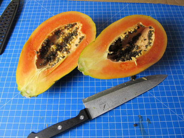 I always like the word "payapa". It has a beautiful melodic ring to it. But I had never actually tried one! I finally got to try one. Yay! It's pretty simple to prepare and not difficult to cut. Cut it any way you like and discard the seeds. Don't eat the skin. It is not strong in flavor. It is very mild but I can't describe it any way other than tasting like papaya! It's a tropical fruit and it is soft in consistency. You can cube it or eat it by scooping it out with a spoon -after you scoop out the seeds.