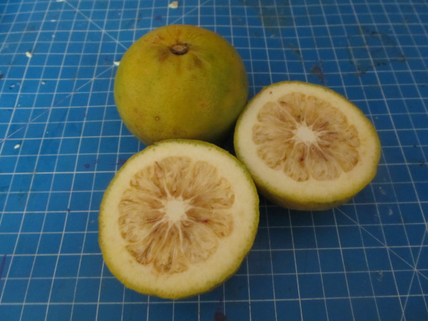 Will's Review: This fruit is true to it's name. It is about a 50/50 combination of an orange and lemon. It is not as sour as a lemon. So, it is actually a rather pleasing fruit. But... I don't know if it is true for all sour oranges but the ones I bought had much more rind than either a lemon or an orange. You can see this in the picture. The peel and all the inner network of "cartilege" is pretty thick. So, you can't peel it and eat it. You have to slice it and enjoy it that way. Nonetheless it was a great experience. Give them a try.