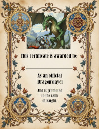 If you play this game and you slay the dragon, retrieving the dragon's scale, you can send me an email. And I will email you back a certificate of accomplishment and knighthood! I will put your name on it, any name you want including your courtly name or made up hero name! Here is my email: