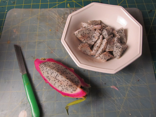 This is an aptly named fruit. It does have a kind of dragon skin look to it! It's really easy to prepare and I was suprised to discover that it pretty much tastes just like a kiwi. Yup, maybe a little milder and a bit sweeter. It's easy to prepare and just like most fruit it doesn't require any cooking. Let me show you how to prepare it. |