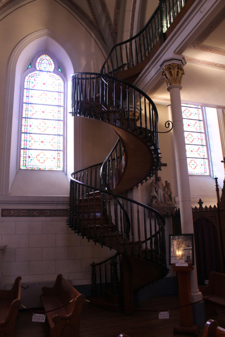 There is a 150 year old chapel in Santa Fe New Mexico called "The Loretto Chapel". And there is quite a remarkable story about the miraculous stairway in the chapel. You can see pictures of the stairway and learn the story here: The Miraculous Stairway. But on this page I have pictures of the stained glass windows in the chapel. |