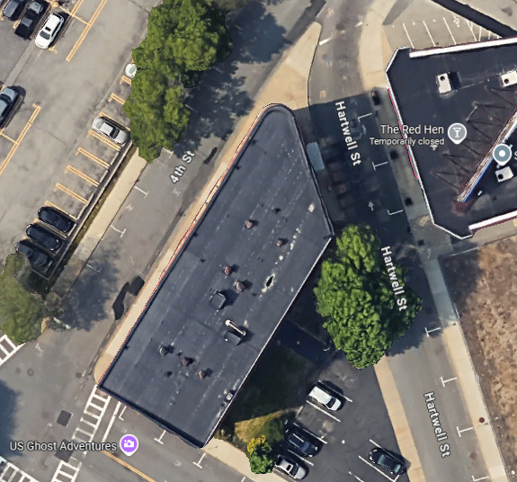 I am not sure if this is a "true" flat iron building. But it's pretty close. Below I show you an aerial view of it so you can see what I mean. This next one is in the downtown area on the intersection between Hartwell street and 4th street.