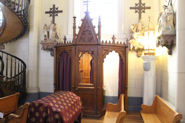 There is quite an amazing story about this spiral staircase that is 150 years old. I will tell you the story and show you some pictures and a video. I have a series of closeup pictures of the stairway on this page right here. I also have pictures of the stained glass windows in this chapel.