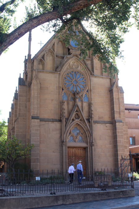 Upon completion of the stairway, the carpenter disappeared without payment or any account owing for supplies. The "Miraculous Stairway" is made entirely of the carpenter's wood (the subspecies of which is not found anywhere else on earth), has two 360 turns, has no center support, and rests entirely on it's final tread. It has 33 steps, and was originally built without a railing. While we still do not know who built it, how it stands, nor where the wood came from, (This is the Miraculous Stairway) The front of the Loretto Chapel. The side of the Loretto Chapel. Inside the chapel The altar and retablo