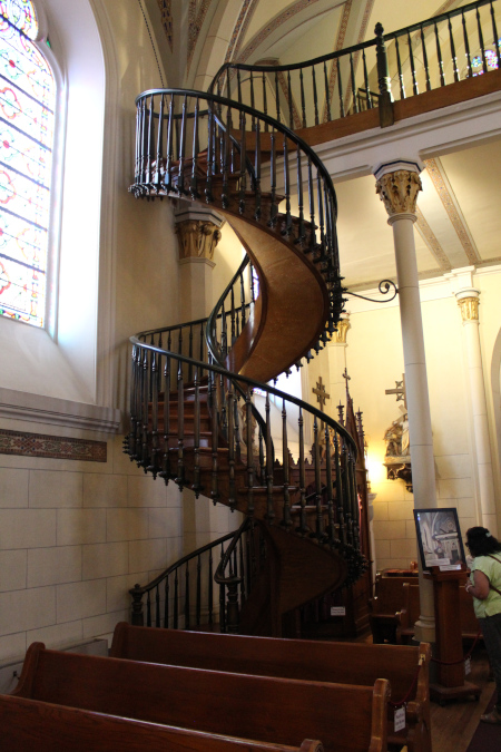 Constructed in 1873, the Loretto Chapel was commissioned by the Sisters of Loretto as a private chapel for their school for girls. Patterned after Saite-Chappelle in Paris, the chapel is believed to be the first gothic structure west of the Mississippi and would have stood out among the one-story adobe structures of the time. As the chapel was nearing completion, the sisters were left with no plans for access to the choir loft twenty feet above. Unable to find a solution, the sisters prayed a nine day novena to their patron, Saint Joseph (Who also happens to be the patron saint of carpenters).