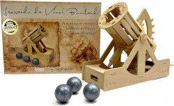 Pathfinders Leonardo Da Vinci Trebuchet Engine While Trebuchets were common siege engines in Medieval Times, Leonardo's take on the most powerful weapon of the time was unique-his design used one main mast, different from all others before. Based on his drawing from the Codex Atlanticus, Da Vinci's trebuchet was a design likely made for the Duke of Milan in about 1482, to impress the Duke of his skills as a military engineer. While it is not known if it was ever used in battle, you can bring Leonardo's trebuchet to life with this working model! This wooden kit is easy to make in about an hour or two. It is composed of natural untreated wood and plywood. All pieces are pre-cut and ready to go. The parts are pegged for extra strength. Also included are clay balls you can hurl over 4 meters! Kit measures 62cm in height and 32cm in length when complete.