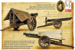 This is a reproduced retractable cannon designed by Leonardo Da Vinci. He gave the cannon the ability to aim, both up and down and side to side, while the frame is staked into the ground in order to control the recoil.