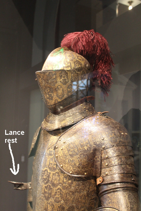 As displayed this armor is for heavy cavalry, horsemen who specialized in charging the enemy, attacking with a spear braced