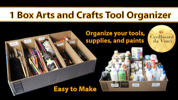 If you are like me you have a lot of various supplies for your arts and crafts. This would include lots of pens and pencils; lots of paints and paintbrushes; and all kinds of other stuff including glues and more. And if you are like me they are scattered about in different boxes and containers. In this tutorial I show you how to make a clean and neat organizer for these supplies. All it takes is one box. And most boxes are perfectly set up to make it very easy and durable. |