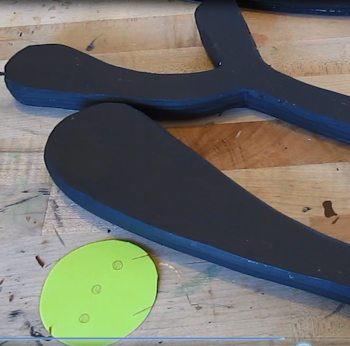 You can string and paint the pins. The short pin is ok. You don't have to string it. Do this with the long pins. To one of them tie a length of string about ten inches long. Tie a string between two pins that is about five inches long. You can also paint the pins black.