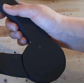 Put the hinge together to see how it fits. Trim or sand anything as needed so it hinges smoothly but firmly. If it is a little tight that will be ok. Now put the hinged parts fully together and turn it so the ends of the other end are touching. We are going to put holes for the pins.