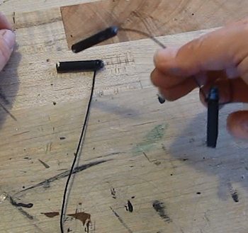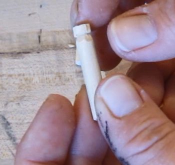Cut some dowel pins. Make one of them 1 inch long. And make three of them 1 1/4 inches long.