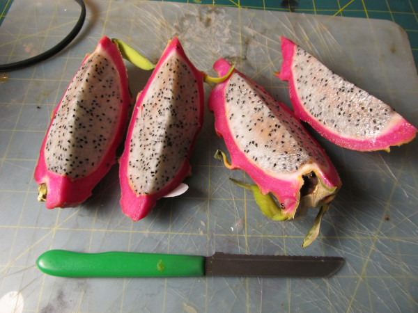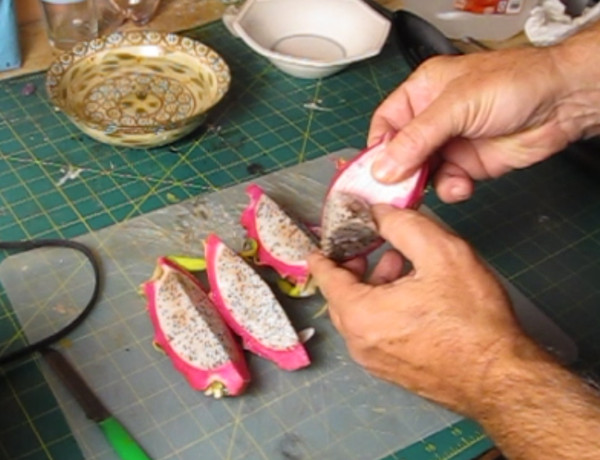 This is an aptly named fruit. It does have a kind of dragon skin look to it! It's really easy to prepare and I was suprised to discover that it pretty much tastes just like a kiwi. Yup, maybe a little milder and a bit sweeter. It's easy to prepare and just like most fruit it doesn't require any cooking. Let me show you how to prepare it. |