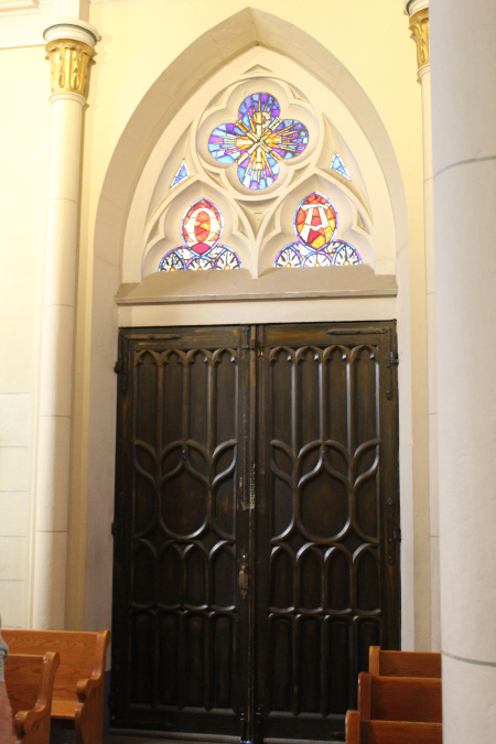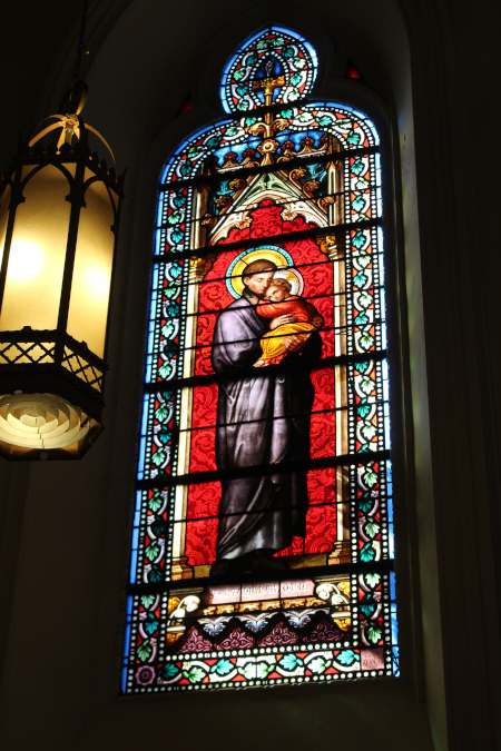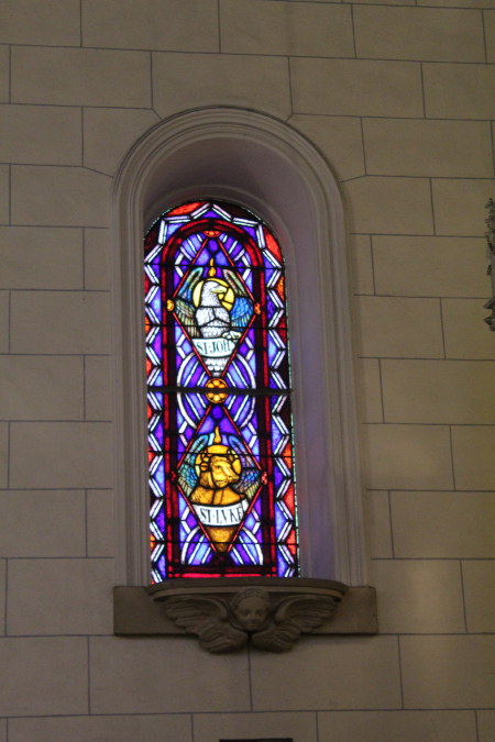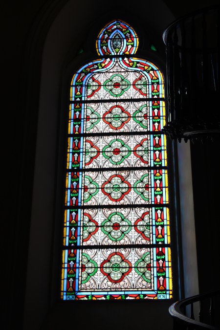 There is a 150 year old chapel in Santa Fe New Mexico called "The Loretto Chapel". And there is quite a remarkable story about the miraculous stairway in the chapel. You can see pictures of the stairway and learn the story here: The Miraculous Stairway. But on this page I have pictures of the stained glass windows in the chapel. |