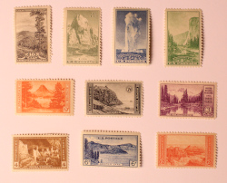 In 1934 the USPS issued ten stamps commemorating America's National Park - Let's take a look at them. I show you larger pictures and tell you a little bit about them: The 1934 National Parks Commemorative Series