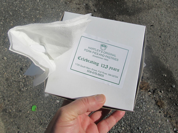 This is a magnificent little place. Let me explain. It has been around since 1900 - yup. And, this is just speculation on my part but in that period of time Fall River was a powerhouse in the world. There were innumerable fabric mill running 24 hours a day spinning threads and creating fabrics. There were tens of thousands of mill workers. And... I gurantee you that many of these mill workers ate Hartley's pork pies for lunch, or picked some up after work to bring home to the family. It was magical times. I also have a video you can watch - get a look at these delicious pork pies. |