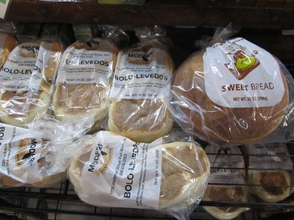 If you are familiar with portugues food then you know what Bolos are and what sweetbread is. They are fantastic. For me, the bolos are superb when lightly toasted or fried and used to make an egg and cheese sandwich. And the sweetbread has a beautiful golden yellow color and is sweet in a way that is not like sugar. It has a wonderful natural sweetness to it. If you buy anything at all at the Portugalia market I recommend you get at least one of these two.
