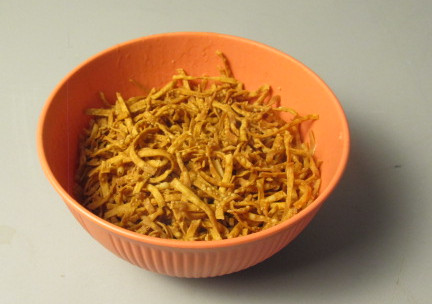 You can buy it at the factory and you can buy it in local grocery stores. And, this particular food is on the menu of many local restaurants both as a stand alone item and as a sandwich. It's composed of a sauce and a dry noodle. You can see it here. And it just takes a few minutes to prepare. I will prepare it for you. Let's make a couple of chow mein sandwiches.